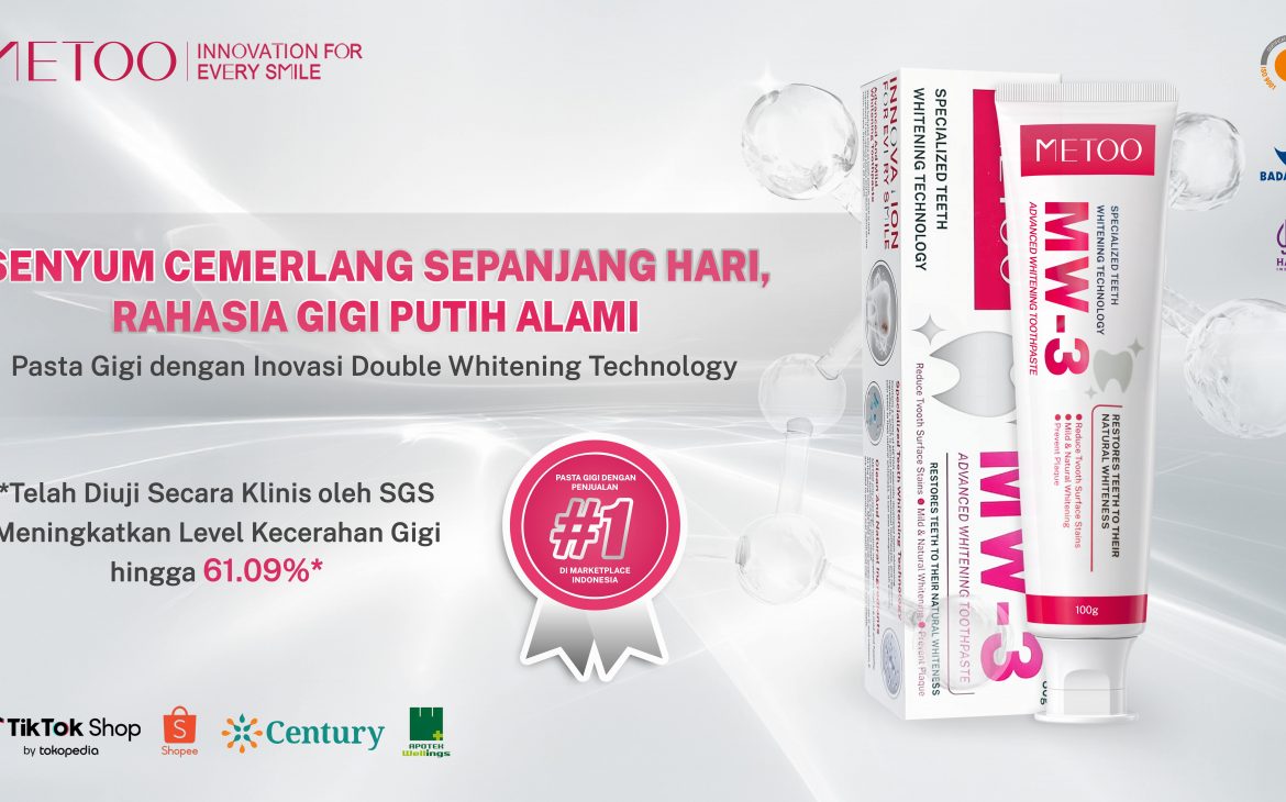 METOO hadir dengan produk pasta gigi pemutih METOO MW-3 Advanced Whitening Toothpaste untuk rahasia gigi putih percaya diri setiap hari METOO MW-3 Advanced Whitening Toothpaste diformulasikan khusus untuk menaikkan tone warna putih alami gigi hanya dalam 7 hari pemakaian. “Pasta gigi ini cocok untuk Anda yang ingin mengatasi gigi kuning akibat konsumsi kopi, teh, atau minuman bersoda, serta kebiasaan merokok, jawaban untuk senyum cemerlang sepanjang hari, rahasia gigi putih alami”, Ungkap Aiko.