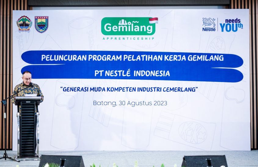 Bangun Kompetensi Talenta Lokal: Nestlé Indonesia dan Pemerintah KabupatenBatang Luncurkan Program Pelatihan Kerja Generasi Muda Kompeten Industri Cemerlang “GEMILANG”Batang, 30 Agustus 2023 – Hari ini, Nestlé Indonesia bersama dengan Pemerintah Kabupaten Batang dan